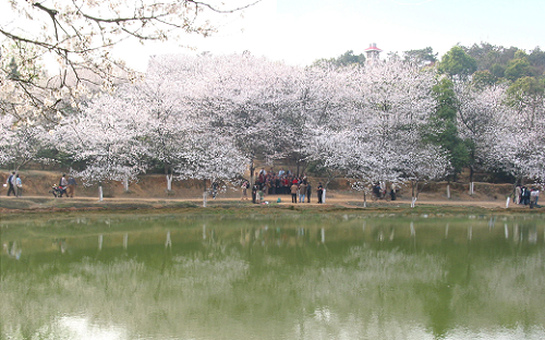 園內(nèi)山明水秀,萬木爭榮,空氣格外清新,適宜于森林療養(yǎng)和空氣療養(yǎng)。園內(nèi)的園林造景別具一格,以三湘景園為代表的人文景園,以櫻花園、珍稀蔭生植物園、木蘭園、桂花園為代表的專類園,雅致大氣,內(nèi)涵豐富。每年3月園內(nèi)近3000株櫻花競相開放,游客絡(luò)繹不絕。我園精心舉辦的櫻花生態(tài)文化節(jié)已成為深受廣大市民喜愛的踏春賞花交游的民眾節(jié)日。1992年在公園西部海拔106米的山包上,新建天際閣,高20米,4層,下為正方形,上為六邊形,翹角寶頂,黃色玻璃瓦覆蓋,朱欄棟,光彩照人,為南郊新添勝景。
