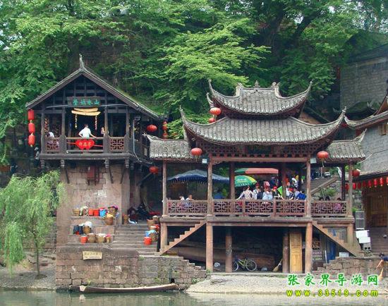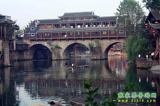 沱江河是古城鳳凰的母親河,她依著城墻緩緩流淌,世世代代哺育著古城兒女。坐上烏蓬船,聽著艄公的號(hào)子,看著兩岸已有百年歷史的土家吊腳樓,別有一番韻味。順?biāo)拢┻^虹橋一幅江南水鄉(xiāng)的畫卷便展現(xiàn)于眼前:萬(wàn)壽宮、萬(wàn)名塔、奪翠樓……一種遠(yuǎn)離塵世的感覺悠然而生。沱江的南岸是古城墻,用紫紅沙石砌成,典雅不失雄偉。城墻有東、北兩座城樓,久經(jīng)滄桑,依然壯觀。