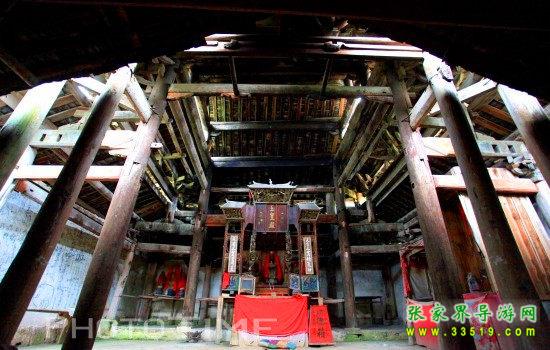 土司祖師殿位于老司城太平南麓,始建于后晉天福二年(公元937年),重建于明代。正殿柱大數(shù)圍,上架木枋處無斧鑿痕跡,相傳為魯班顯靈所建。此殿占地580多平方米正殿面闊五間,進深四間重檐歇山頂,長17.5米,寬13米,高20米,全木材結(jié)構(gòu),永34根大柱支撐屋頂。柱礎(chǔ)用雙曡圓鼓式,殿脊殿檐是圖案精致的陶磚陶瓦。殿中金柱前,砌有神龕一座,上供“祖師”神象。殿宇斗拱雄偉古樸,梁架結(jié)構(gòu)頗為特殊,是土家族地區(qū)頗具民族特色的建筑,為湖南省重點文物保護單位。