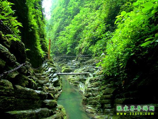 坐龍峽,經(jīng)由300萬年大自然的風(fēng)吹、水蝕而成,一直隱逸于湘西茫茫十萬群山之中。它長約3500米,最大高差達(dá)300余米;寬處不足丈余,窄處僅容一人通過;谷內(nèi)絕壁縱疊,溪瀑橫懸,崖樹斜逸,異草遍被。
