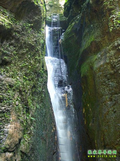 坐龍峽擁有中國第一條特種游道。所有游道均建于峽谷深處,依山取勢,既經(jīng)細(xì)心雕琢聽卻又渾然天成。粗樸的板栗木棧道,可以讓你零距離的親近那一潭碧幽、聽聞山泉叮咚;精巧的跳墩,可以讓你媳戲流泉、觸感溪瀑;原質(zhì)的石坎道,讓你不得不調(diào)動全部的身心能量悉心攀援、感悟峽谷;有驚無險的鐵梯,讓你伴著腳下轟鳴的溪水,在驚怵中體味一份快慰。 出口出的土家山寨,保留了古樸獨(dú)特的生活習(xí)俗。一塊臘肉就一口醇香的“苞谷燒”會讓你洗去所有的疲憊,在輕松中憨厚的主人向你講述過去強(qiáng)人出沒的故事