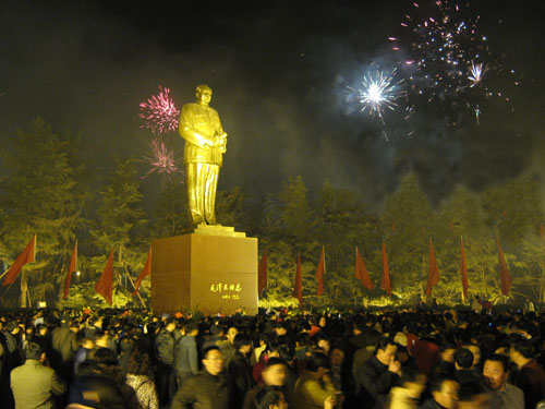 毛澤東同志銅像于1993年12月6日運抵韶山,同月20日上午10時30分舉行揭幕典禮,中共中央總書記、國家主席、中央軍委主席江澤民為銅像揭幕。銅像運抵韶山前后,韶山比任何時候都熱鬧,韶山人民以一種難以割舍的虔誠等待著家鄉(xiāng)的驕子歸來。也許是自然現(xiàn)象的巧合,毛澤東銅像運抵韶山前后,這里平添、演繹出了許多神秘的傳說和故事。