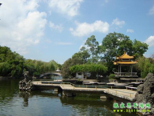 湖內(nèi)亭臺樓閣,垂柳煙色,湖岸綠色蔥蘢,鮮花妖艷,素有“妙絕 西湖勝虎丘”的美譽。主要景點有發(fā)源殿、岸花亭、雙壁坊、夕照亭等。