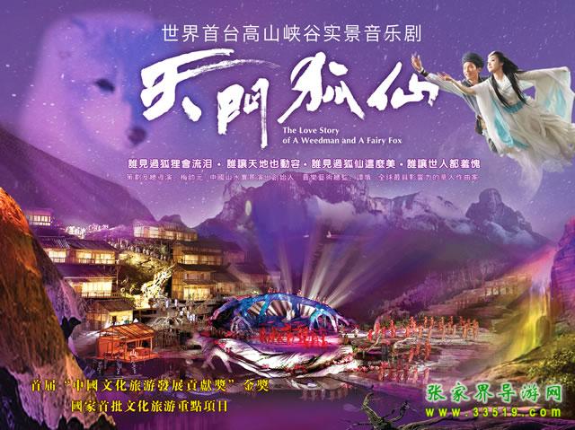 《天門狐仙》于2009年9月9月17日晚,“張家界大型山水實(shí)景音樂劇《天門狐仙》正式開演”,世界第一臺(tái)大型山水實(shí)景音樂劇正式與國內(nèi)外觀眾見面。