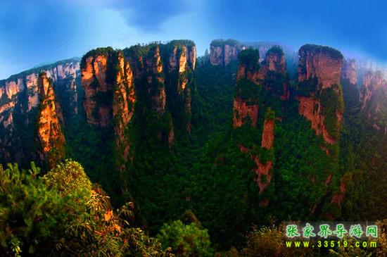 有人曾這樣評價張家界黃石寨:五步稱奇,七步叫絕;十步之外,目瞪口呆。黃石寨這里的每一座巖蜂都是一件古老的藝術(shù)品,它們?nèi)鐒Α⑷玑?、如龍首、如龜頭、如現(xiàn)代化都市的摩天大廈……1992年5月,兩位聯(lián)合國世界遺產(chǎn)委員會派來的藍眼睛官員面對黃石寨的磅砣氣勢哦哦連聲,嘆為觀止。