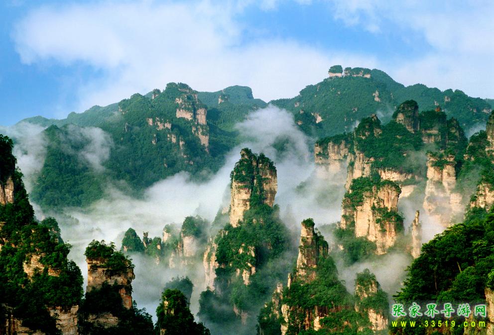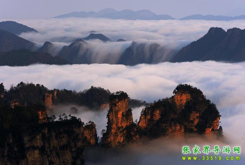 武陵源獨(dú)特的石英砂巖峰林在均屬?lài)?guó)內(nèi)外罕見(jiàn),在360多平方公里的面積中,目前所知有山峰3000多座,這些突兀的巖壁峰石,連綿萬(wàn)頃,層巒疊嶂。每當(dāng)雨過(guò)轉(zhuǎn)晴或陰雨連綿天氣,幽幽山谷中生出了云煙,云霧飄緲在層巒疊嶂間,云海時(shí)濃時(shí)淡,石峰時(shí)隱時(shí)現(xiàn),景象變幻萬(wàn)千。霧,使晴日下堅(jiān)硬的山峰變得妖嬈、飄逸和神秘。觀霧的最好季節(jié)是夏季,天子山是賞霧的最佳去處,也是攝影家常常涉足的地方。