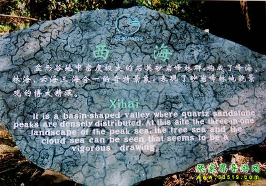 西海位于張家界索溪峪西北,是一個(gè)群山環(huán)抱、深不可測(cè)的“桶”形盤(pán)谷,有上千座石峰竹筍般密密麻麻插在不到幾平方公里的深川大峽之中,秀麗而神奇。春夏或秋初雨后初晴,則云如浪濤,翻涌奔瀉,鋪天蓋地,極為壯觀,是為“云海”。“三海合一”就是西海的特色。其中通天門(mén)、天臺(tái)為絕景。
