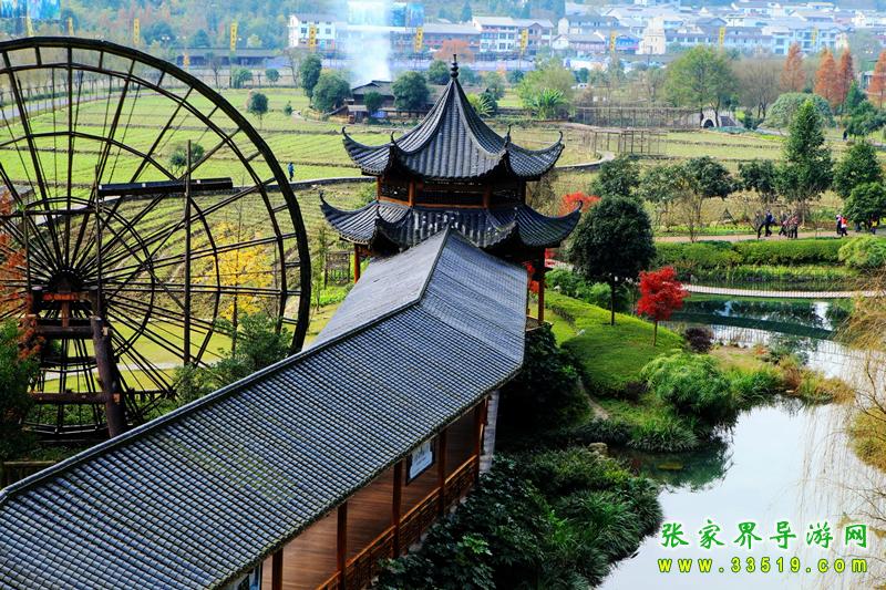 生態(tài)廣場(chǎng)共種植了近1600余株喬灌木,草皮、綠化工程共占地近3萬(wàn)平方米,是廣場(chǎng)總面積的61%。香樟、桂花、紫薇等四季常青的樹(shù)木爭(zhēng)芳斗艷,是人們休閑時(shí)的綠色伴侶。田園風(fēng)光與綠化景觀交相輝映,隔游道相望,農(nóng)田近2萬(wàn)平方米,集中在廣場(chǎng)東南部,水稻、玉米及各類(lèi)果蔬與農(nóng)舍、家禽、和平鴿的融合,串連著鄉(xiāng)村小路,讓鄉(xiāng)野韻味達(dá)到了極致。水車(chē)、石磨,還有蒼勁的風(fēng)水樹(shù)仿佛將人們帶入了一個(gè)古老的世界,石拱橋、鐵索橋與斗拱建筑渾然一體,既有江南水鄉(xiāng)的柔美,又不失土家特色。