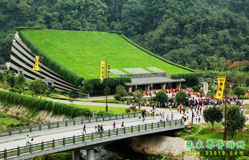 依山傍水而建的土家庭院,總面積有10826.7平方米,形成土家建筑群,分布了商鋪、茶樓、飯店、辦公區(qū)域。哈利路亞音樂(lè)廳是廣場(chǎng)中最大的建筑,它采用了全國(guó)獨(dú)一無(wú)二的斜屋坡面綠化,具有演藝和展示雙重功能,外墻裝飾有流線性的藝術(shù)美感,屋頂綠化與大自然相融,點(diǎn)綴著多色草木,色彩繽紛,形成了“空中花園”的自然觀感。