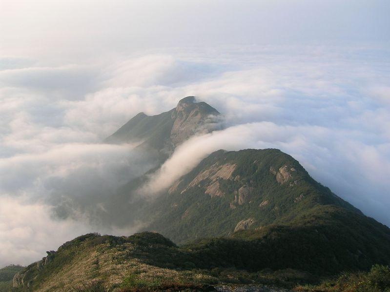 山巔祝融峰,海拔1290米,由于煙云的烘托和群峰的疊襯,構成了"萬丈祝融拔地起,欲見不見輕煙里"的雄姿。登臨其上,可見北面洞庭湖煙波渺渺,若隱若現(xiàn),南面群峰羅列,如障如屏,水面湘江逶迤,宛如玉帶,西面雪峰山頂,銀濤翻騰,萬千景象,盡收眼底。