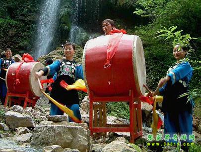 苗家人十分喜愛并看中自己的花鼓,除自娛自樂外,打花鼓還演變成了一種風俗,當作測試未婚女婿智商的一桿公平秤。苗家人文明,自古以來婚姻全憑女兒自主,很少包辦。當女兒將稱心戀人初次帶進家門,父母則會在家門前擺上一面花鼓,并鼓動滿寨子人都來觀看。這叫“攔門鼓”。若這位“女婿”打得花鼓、唱得苗歌、吹得木葉,父母便臉上有光、眉開眼笑,滿寨子人都幫著喜歡,這個女婿是合格的。若不然,這個女婿會被親戚朋友扭住耳朵,涂上滿臉的鍋煙灰,烏漆抹黑地像對待蠢獸一樣罩在一個雞籠里,上面還要頂著一臉盆水……這時定會有人發(fā)出嘰笑:好眼力呀!
