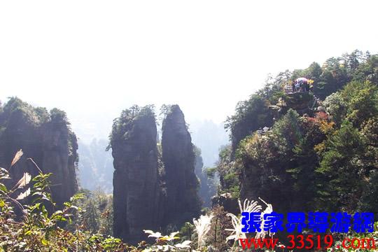 (六奇閣)請(qǐng)各位猜猜,這“六奇”是指哪“六奇”?大多數(shù)講對(duì)了,準(zhǔn)確地說(shuō)是指山奇、水奇、云奇、石奇、動(dòng)物奇、植物奇。“江山留勝跡,我輩復(fù)登臨”;“欲窮千里目,更上一層樓”。站在這里,可以看到袁家界、楊家界、天子山、朝天觀、三姐妹峰