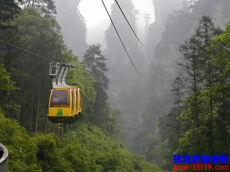 (索道站)現(xiàn)在,我們就要乘索道下山了。黃石寨(黃獅寨)索道是1995年5月至1997年9月臺(tái)灣證吉興業(yè)有限公司與張家界公園管理處合資興建的我市第一條觀光索道。索道線路水平距863,高差431米,運(yùn)行速度每秒8米,單向小時(shí)運(yùn)量948人,設(shè)備全部從法國(guó)波馬公司引進(jìn),總投資4000多萬(wàn)人民幣。黃石寨(黃獅寨)索道的建成,為公園開(kāi)辟了一條空中游覽線,填補(bǔ)了張家界無(wú)觀光索道的空白。古詩(shī)說(shuō):會(huì)當(dāng)凌絕頂,一覽眾山小。乘索道觀張家界公園,別是一番感受。