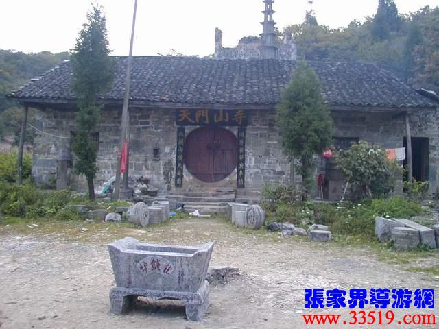 (天門山寺)天門山寺最早建于唐代,古稱云缽庵、靈泉院、嵩梁堂,明代時,因擇址不當(dāng)而屢遭風(fēng)摧又常遭水荒,才將天門山寺從東部山頂遷移至此。以前這里古木參天,濃蔭蔽日。古寺門楣上刻有“天門仙山”四字,大門兩邊的對聯(lián)是:“天外有天天不夜,山上無山山獨(dú)尊”,傳為李自成部將野拂撰書。進(jìn)門為大佛殿后面有觀音堂,兩邊六間平房,最后一棟是祖師殿,規(guī)模宏大。民間概括為“三進(jìn)堂、六耳房,磚墻鐵瓦鍋如壙”。山寺原建筑十分講究,飛檐翹角,雕龍畫鳳,并塑有佛道神像菩薩等。還有大鼓一面,千斤大鐘一口,一座七級石塔和一個大化錢爐。據(jù)碑刻記載,自清乾隆至民國五年的163年間,天門山寺共修葺過七次,香火曾盛極一時,湘鄂川黔邊境十多個縣的信徒絡(luò)繹不絕,都來這里進(jìn)香拜佛?,F(xiàn)天門山旅游股份有限公司正在大規(guī)模地修復(fù)天門山寺,昔日的繁華又將重現(xiàn)。