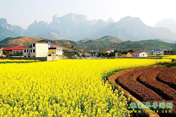 天門山下的油菜花