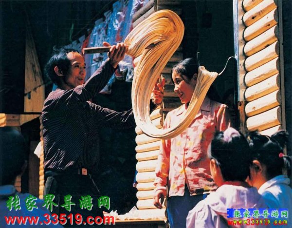 金鞭溪因流經(jīng)金鞭巖而得名,全長(zhǎng)5710米,穿行于絕壁奇峰之間,溪谷有繁茂的植被,溪水四季清澈,被稱(chēng)為“山水畫(huà)廊”、“人間仙境”。有詩(shī)贊曰:“清清流水青青山,山如畫(huà)屏人如仙,仙人若在畫(huà)中走,一步一望一重天”。途中你會(huì)看到點(diǎn)歌臺(tái),那里有土家姑娘時(shí)刻準(zhǔn)備為游人唱民族歌曲,只要付十元錢(qián)她們就會(huì)為你引吭高歌,當(dāng)然,如果你不想花這個(gè)錢(qián),也可以在一邊聽(tīng)聽(tīng)別人點(diǎn)的歌,聽(tīng)完后走人。